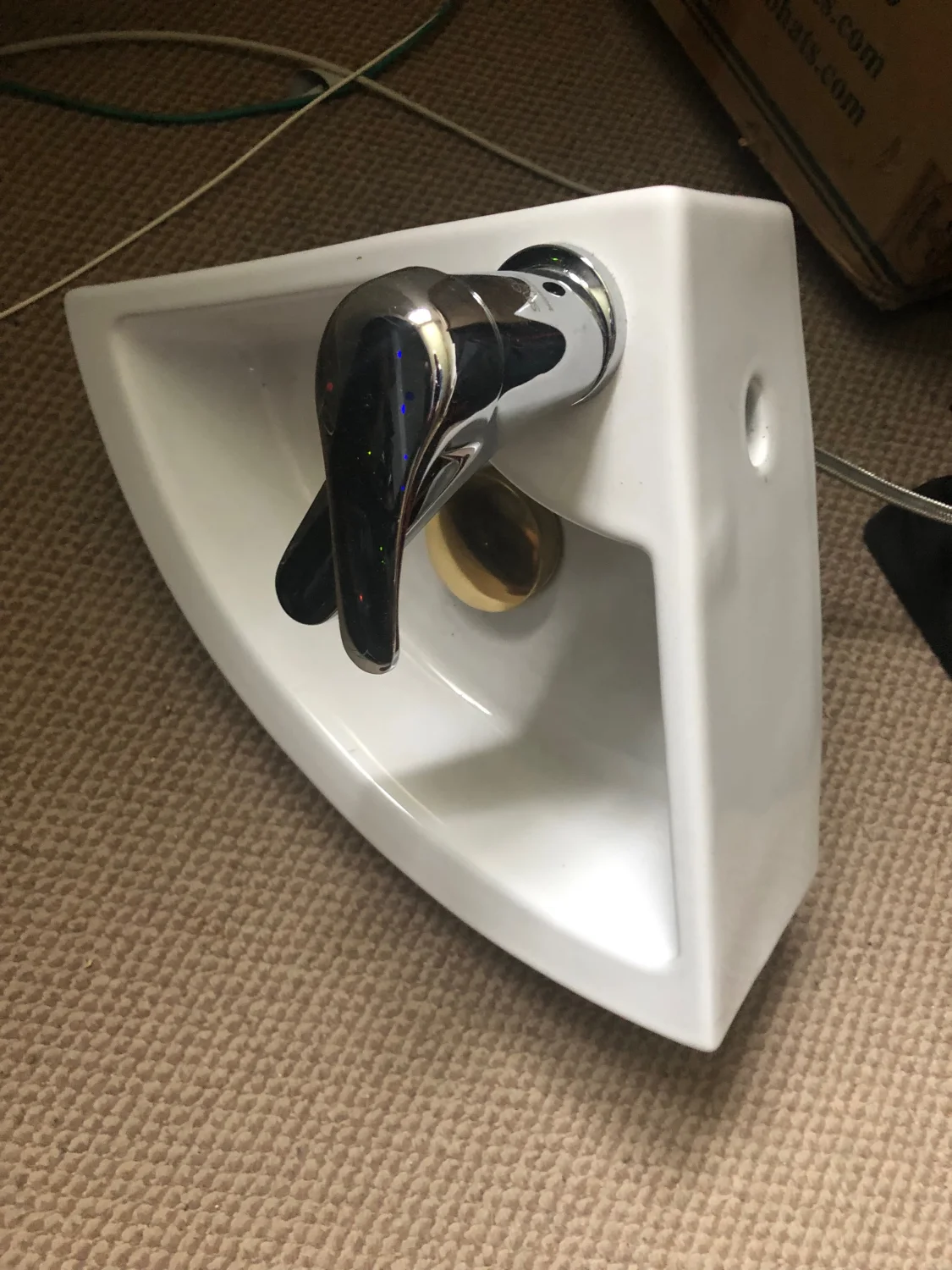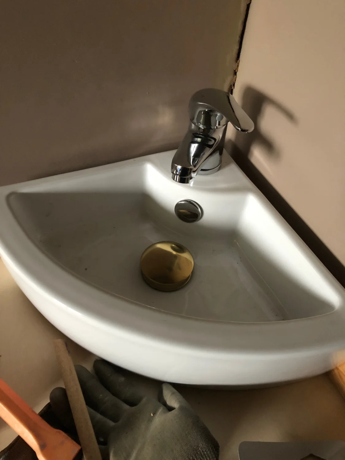 Évier d'angle installé dans le bureau finalisé.